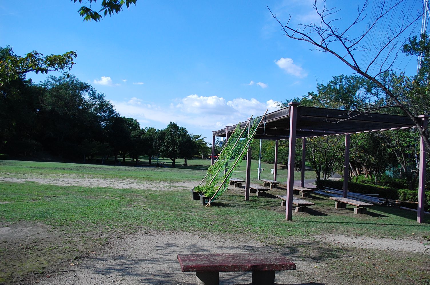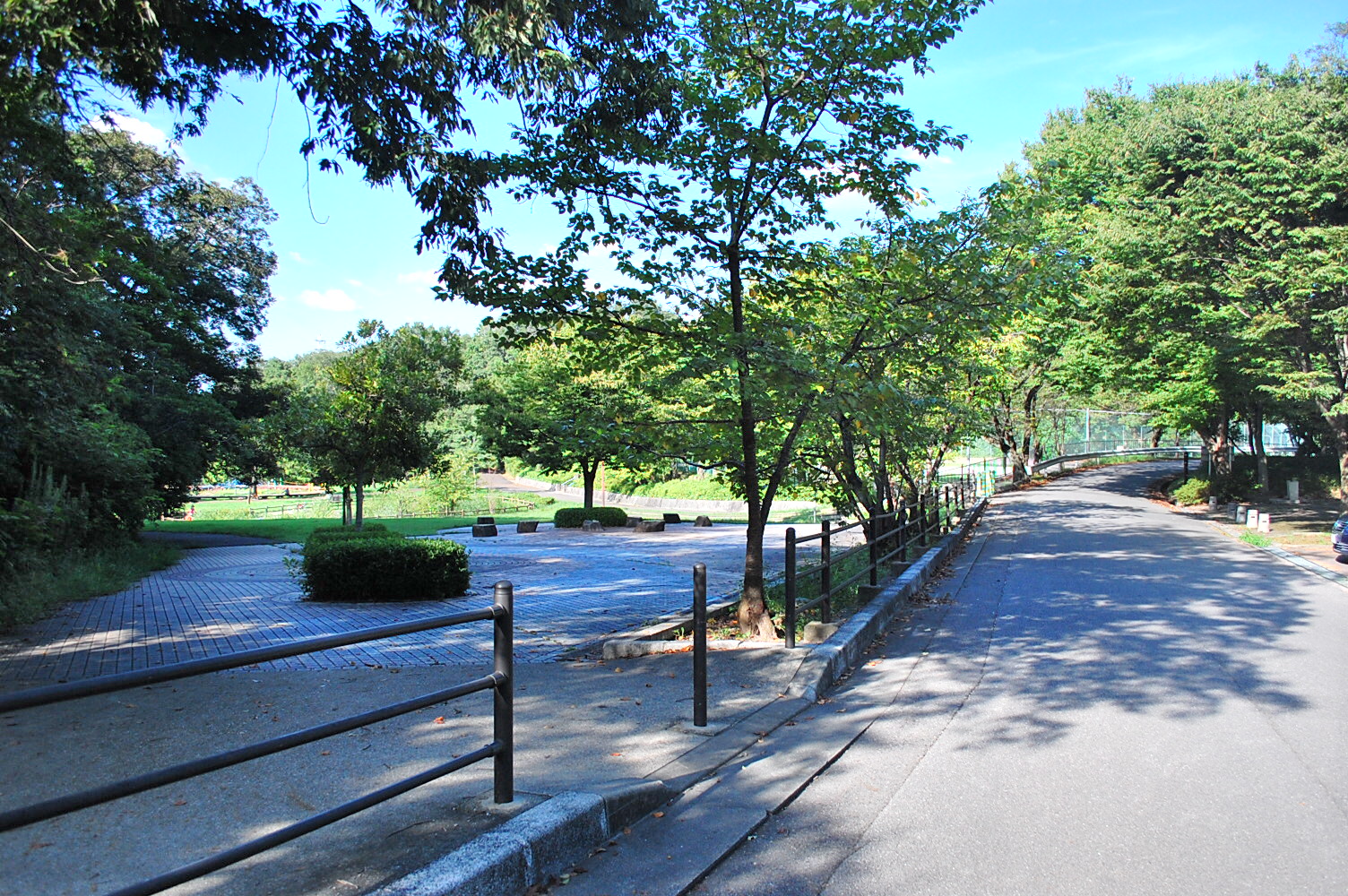 両側に竹が並ぶ「竹の小径」と呼ばれる散策路は、日差しが遮られ、夏でも少し涼しさを感じることができます。また公園内には遊具のある広場などもありお子様の自転車の練習にも最適です。