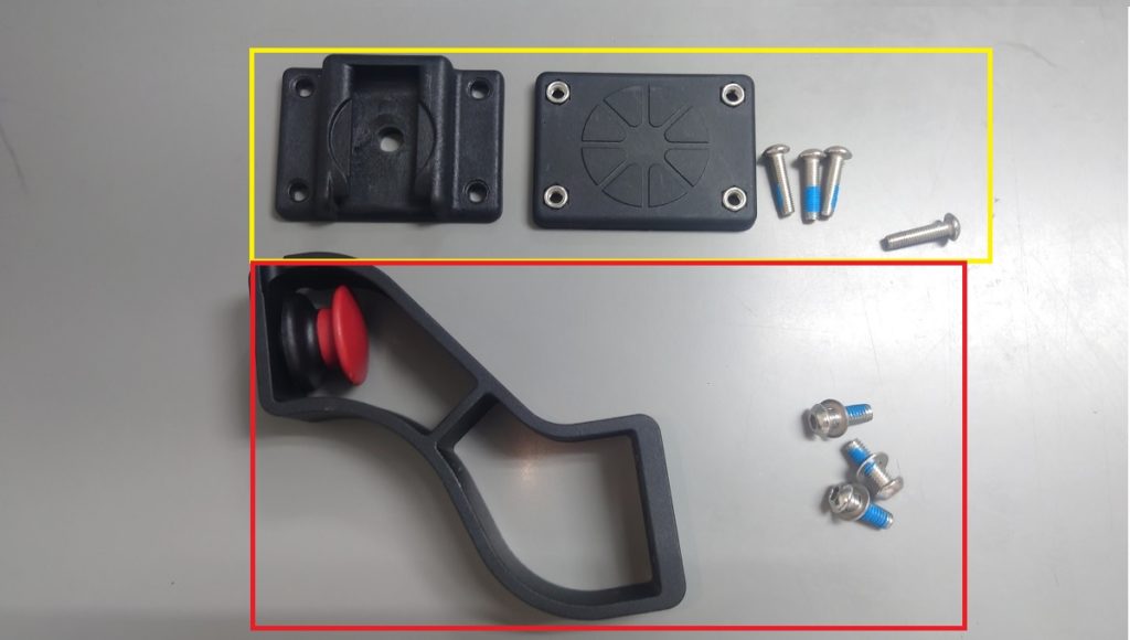こちらがフロントラックを取り付ける為のアダプターとなるバレットトラスです。黄色の枠で囲った箇所がクイックカプラーという部品で、これをフロントラックに取り付けると、赤色のアームの部分に工具不要で簡単脱着できるようになります。今まであまり使い道が無いなと思って仕入れていませんでしたが、フロントラックやバスケットなど拡張アイテムが増えたこともあり仕入れることにしました。次回にでもご紹介しようと思っているTERNブランドでのフロントラックとなる「カンガラック」とそのアダプター「ラゲッジトラス2.0」は、ラゲッジトラス2,0がクリックフィックスという規格に対応していることもあり拡張性という意味ではラゲッジトラス2.0に軍配が上がりますが、アダプター自体の作りとしてはバレットトラスの方が優秀な面もあります。それはこのアームの根元部分。ラゲッジトラス2.0は台座部分とアームが溶接ですが、バレットトラスは一体物。アームには常に荷重と振動で負荷がかかっているので、溶接はいずれ破断する可能性がありますが、一体物であるバレットトラスはそのようなことが無いでしょう。これは本当に良い点です。