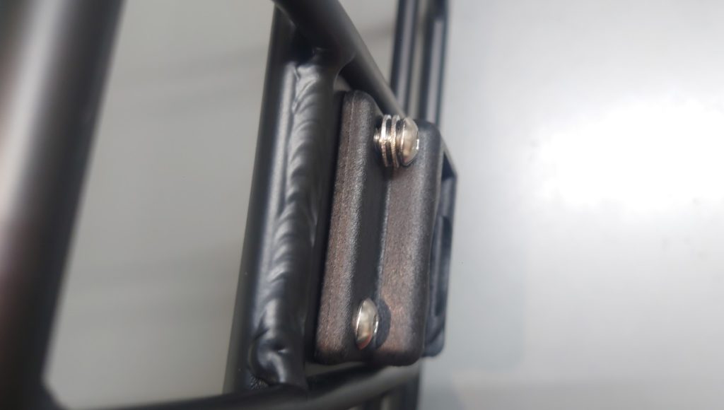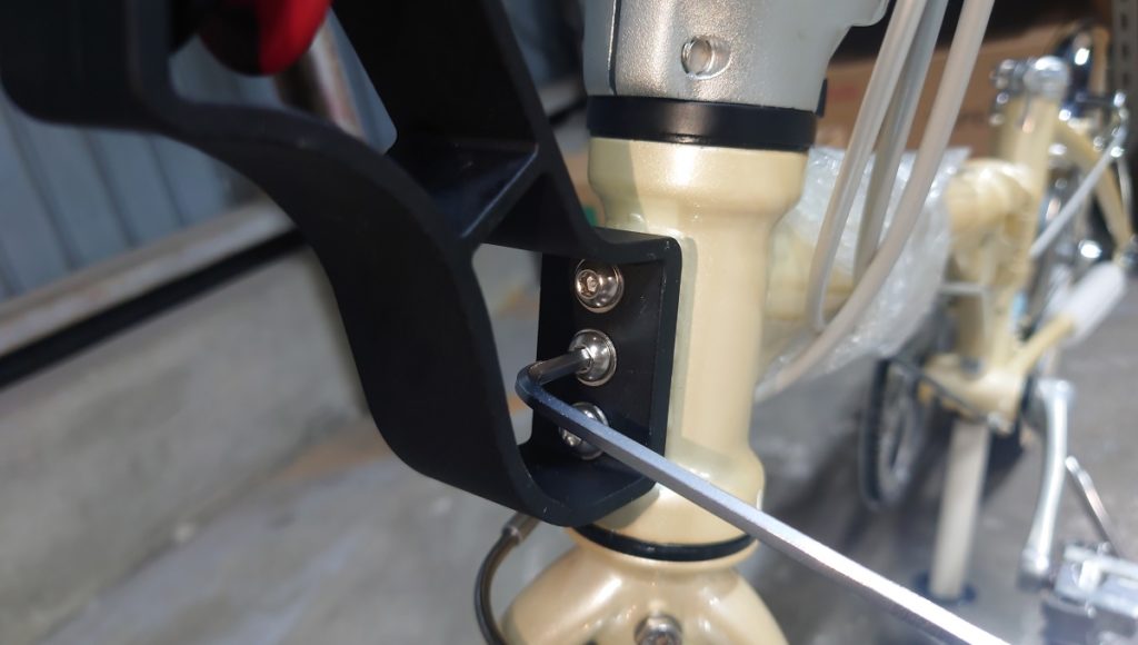 バレットトラスを車体に取り付けてみます。クイックカプラーの取り付けは3mmの六角レンチ、バレットトラスをフレームの台座に取り付ける際のボルトには4mmの六角レンチを使用します。スペースが狭く取り付けやすいとは言えませんので、お取り付けの際にはボルトが斜めにならないようくれぐれもご注意下さい。