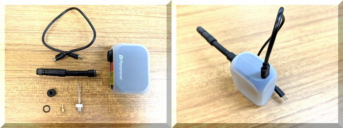 仏式バルブと米式バルブ対応の携行性に優れた自転車専用の電動ポンプです。